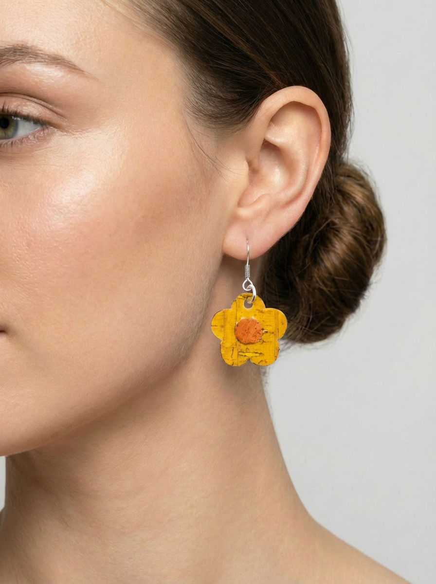 Vegan Cork Petal Dangle Earrings – Mustard Yellow